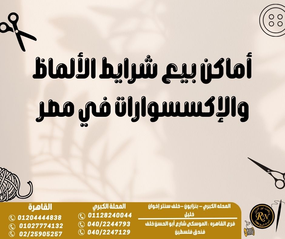 الكلمات المفتاحية: أماكن بيع شرايط الألماس في مصر، إكسسوارات الملابس، أقمشة وإكسسوارات مستوردة.